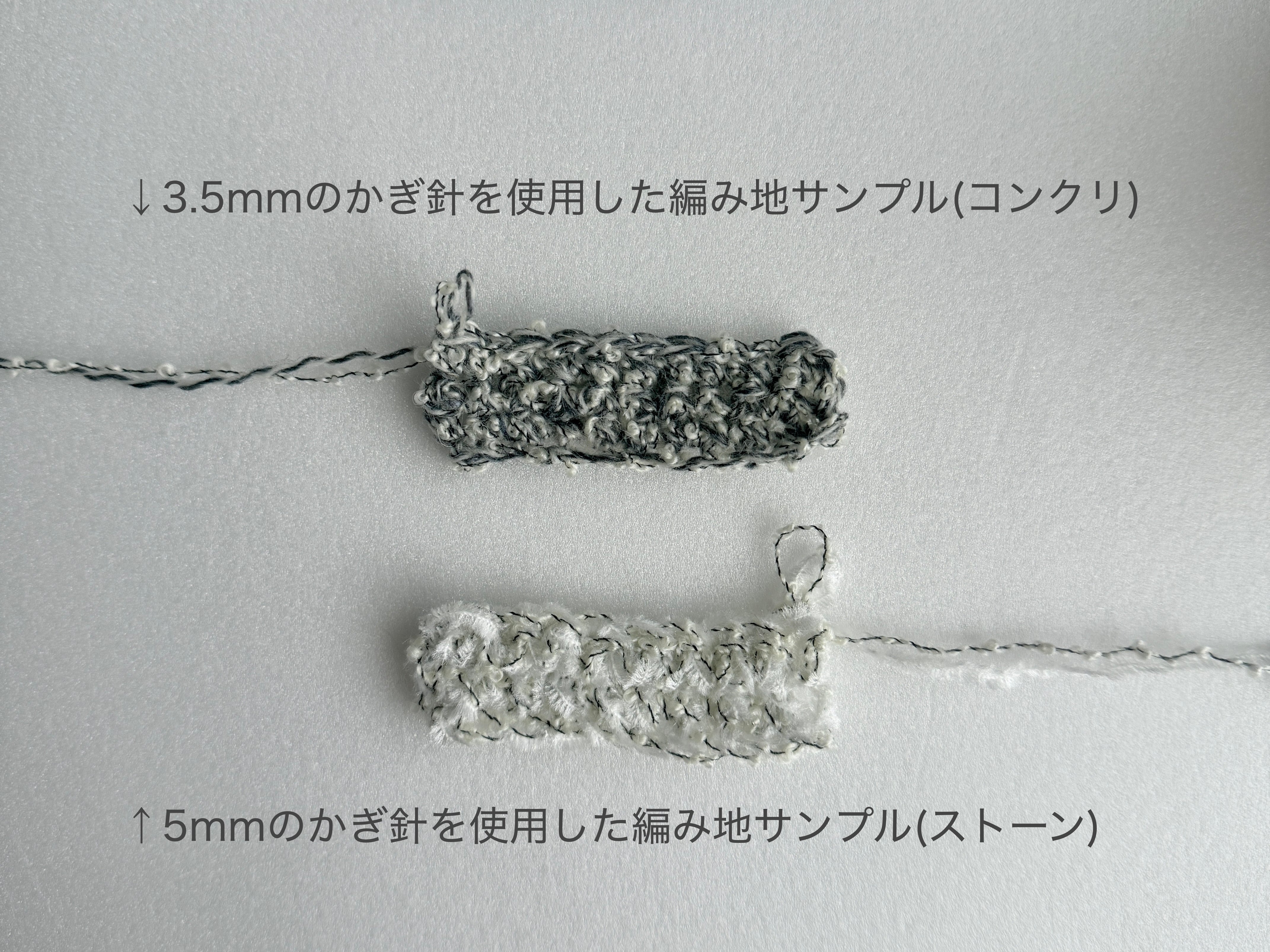 商品画像の編み地サンプルは3.5mのかぎ針を使用しています。