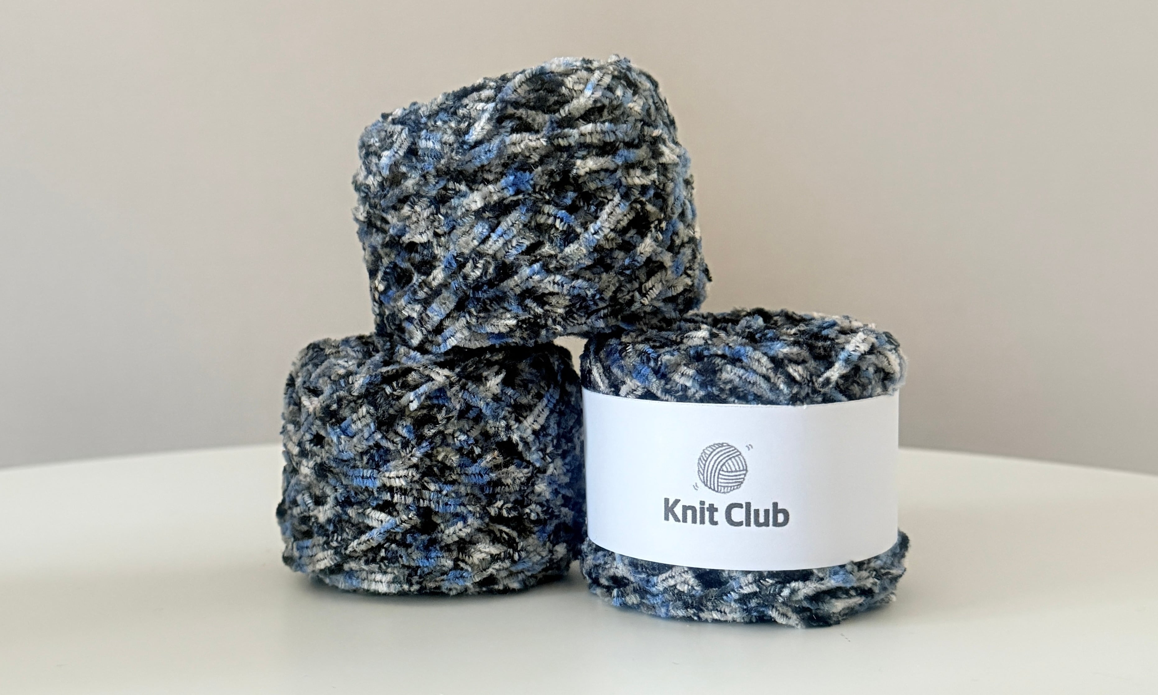 水彩画のように色が混ざるモールヤーンです。