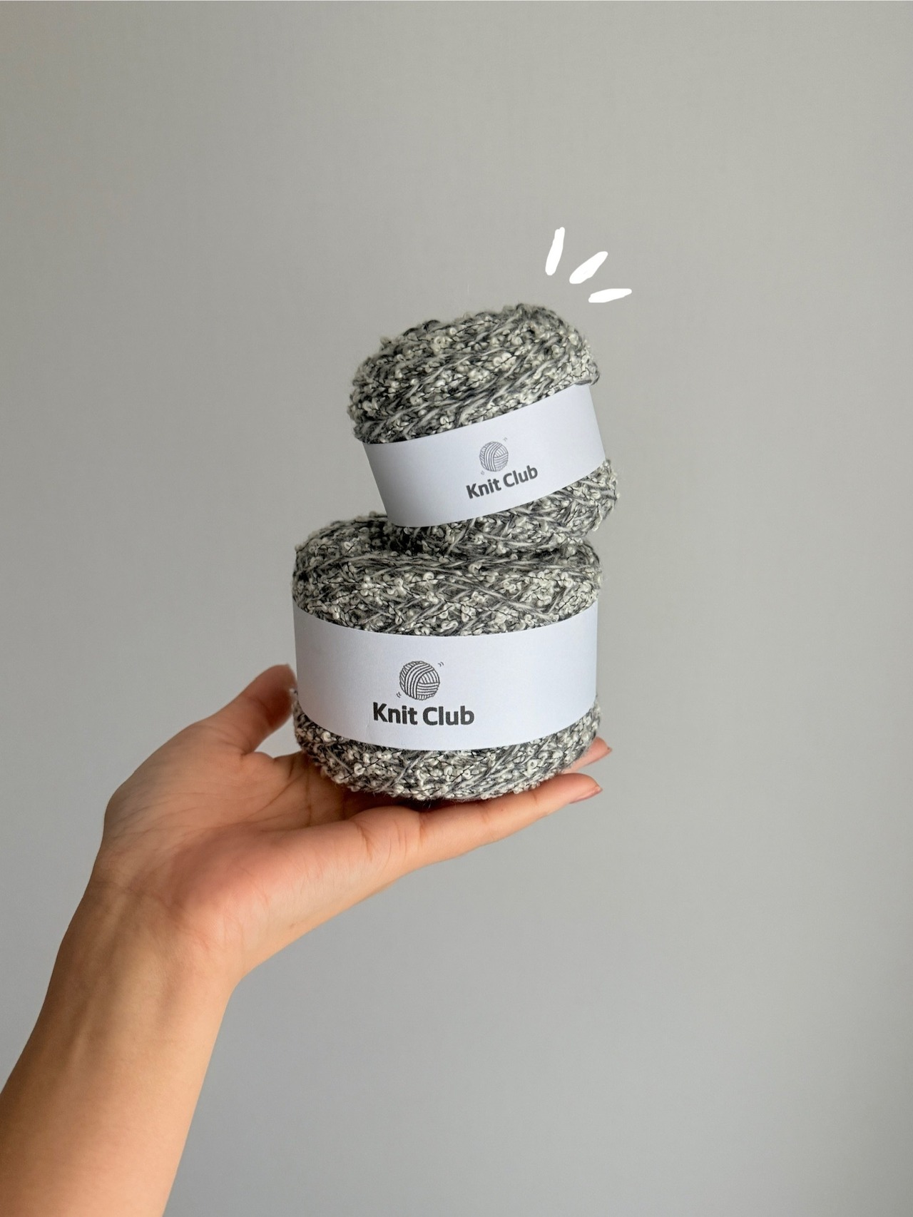 ファンシーヤーンを組み合わせたモノトーンの引き揃え糸です。