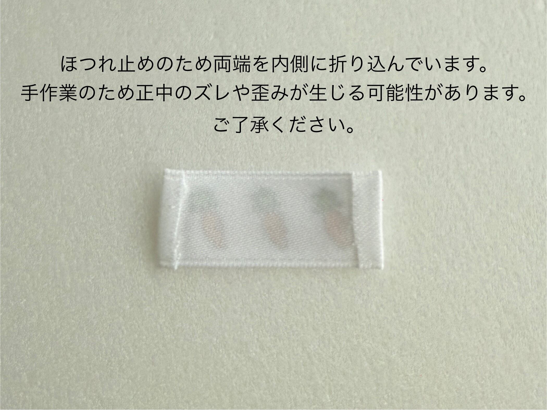 ・ほつれ止めのため両端を内側に折り込んでいます。手作業のため正中のズレや歪みが生じる可能性があります。ご了承ください。